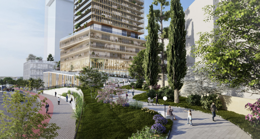 תכנית להריסת עשרה מבנים קיימים והקמת 3 מגדלים בני 39-40 קומות ובניין מרקמי בן 10 קומות, שטחי מסחר ותעסוקה, גני ילדים, בית כנסת, מינהל קהילתי ומעונות יום.בנוסף 10 יח"ד מותנות בקרן תחזוקה ארוכת טווח. קרדיט הדמיות: לזרוביץ אדריכלים Isa.